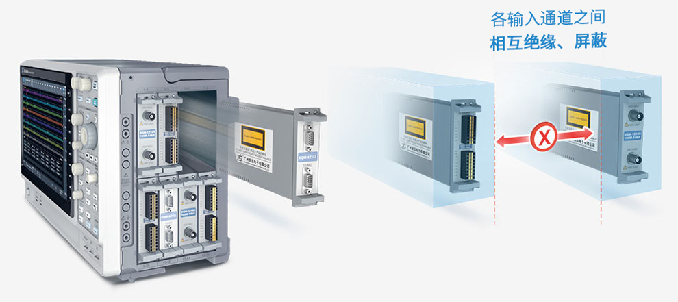 每台示波记录仪标配8个板卡卡槽,各输入通道之间相互绝缘隔离,尽可能地确保在强干扰、多参考电压等复杂环境下的精确测试。